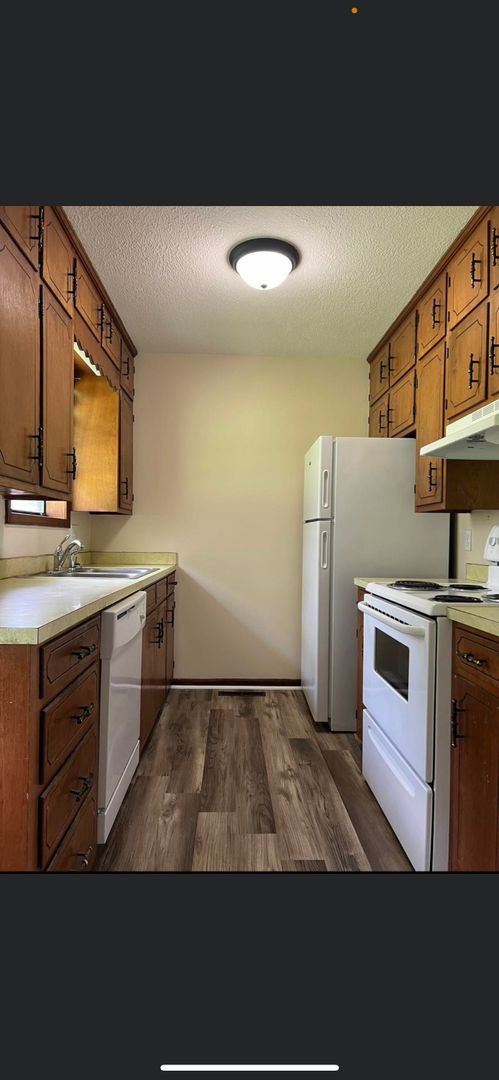 2 bedroom 1 bath duplex, gas/water/electric utilities. Comes with refrigerator/stove/dishwasher and lawncare is provided. No Pets.